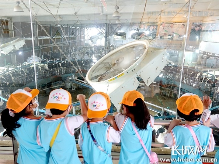 小朋友们到挤奶参观厅参观。长城网记者 信贺宁 摄