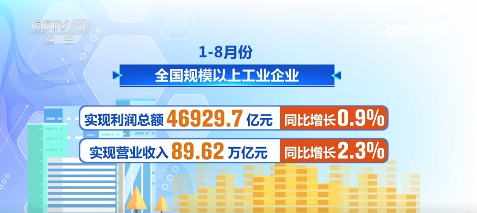 国家统计局9月27日发布数据,今年1至8月份,全国规模以上工业企业实现利润总额46929.7亿元,同比增长0.9%;实现营业收入89.62万亿元,同比增长2.3%,工业企业利润明显改善,扭转了自今年5月份以来企业累计利润持续下降态势。